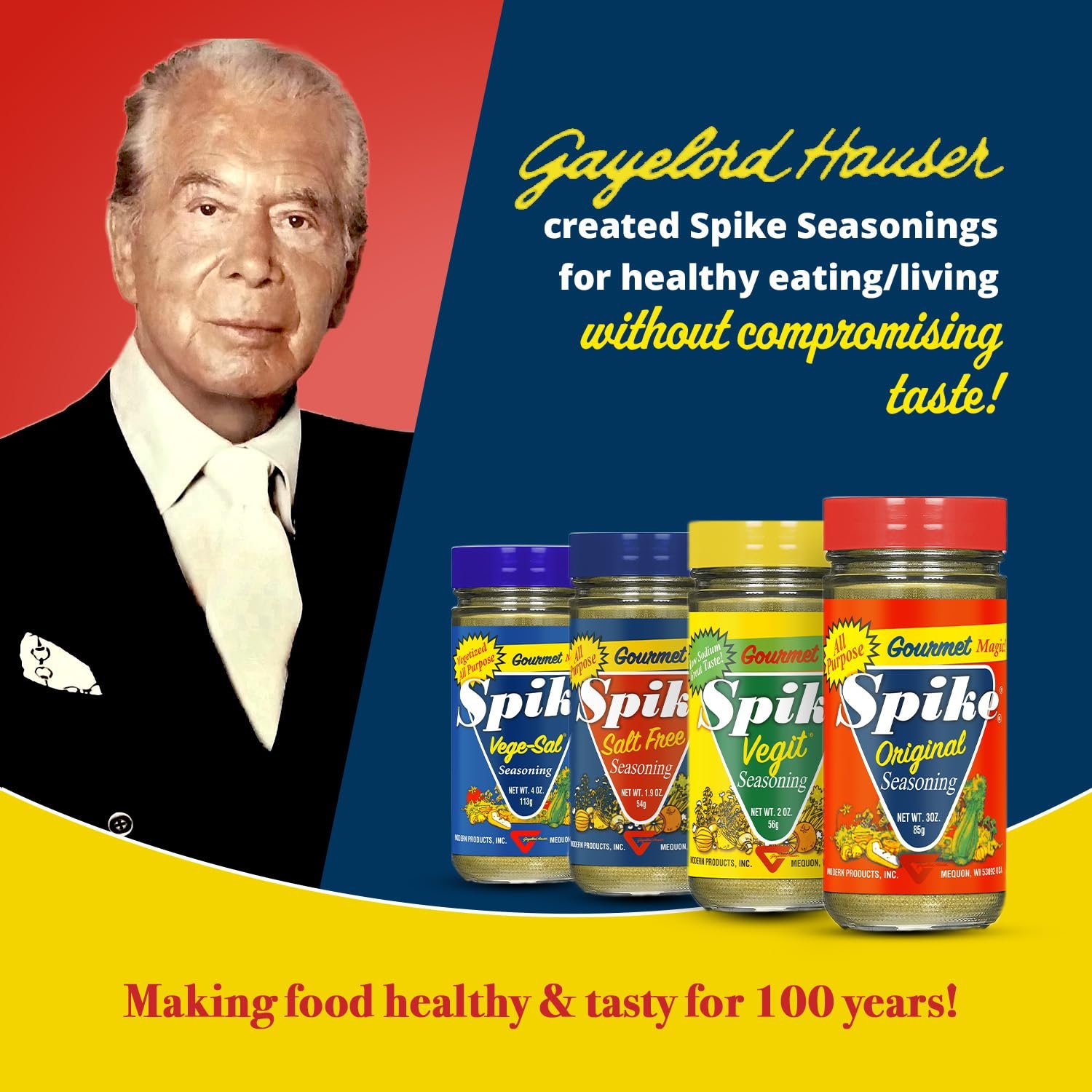 - AN ICONIC SEASONING BLEND: Spike’s original seasonings blend was created by Gayelord Hauser, a pioneering nutritionist who believed in healthy living without compromising the “tasty” things in life.