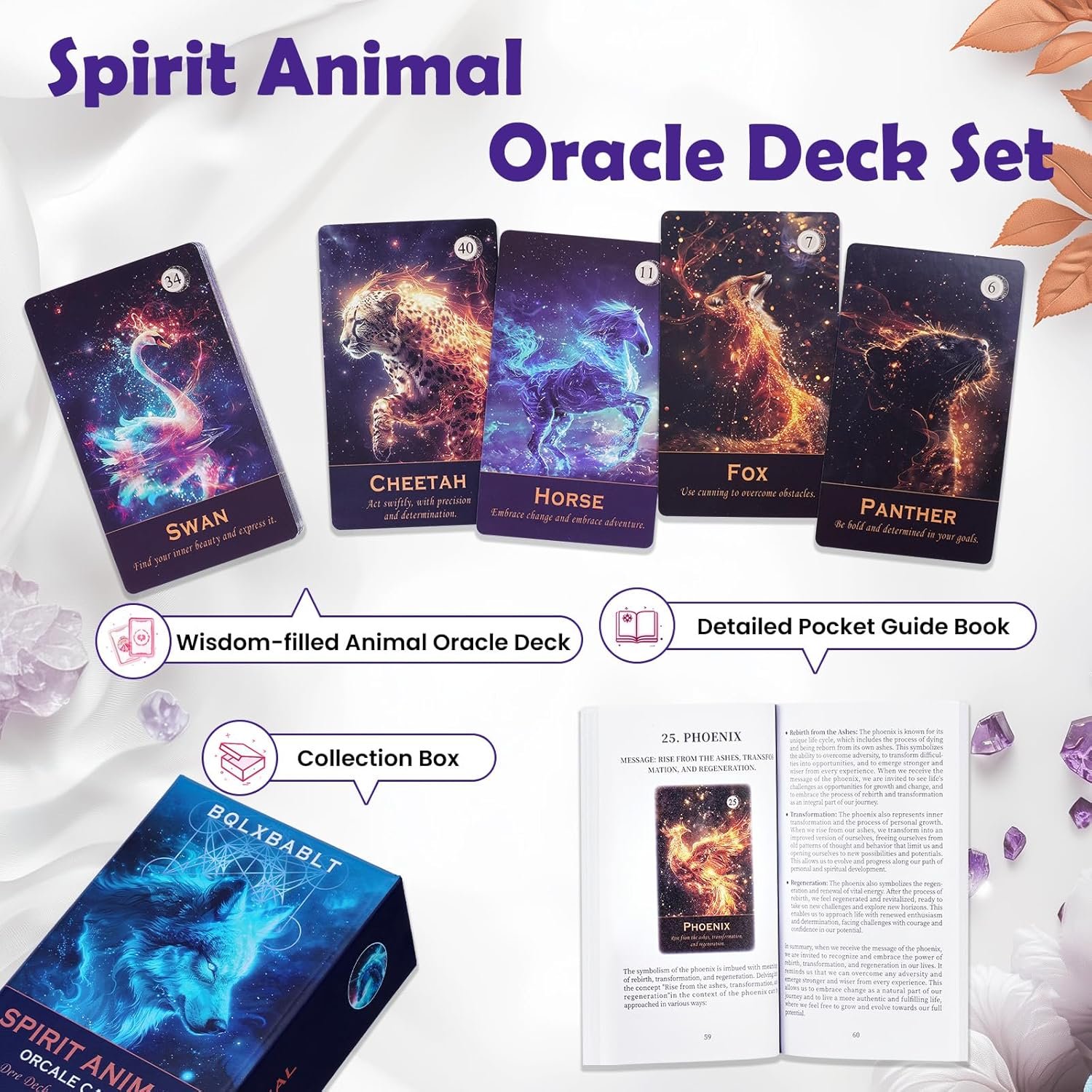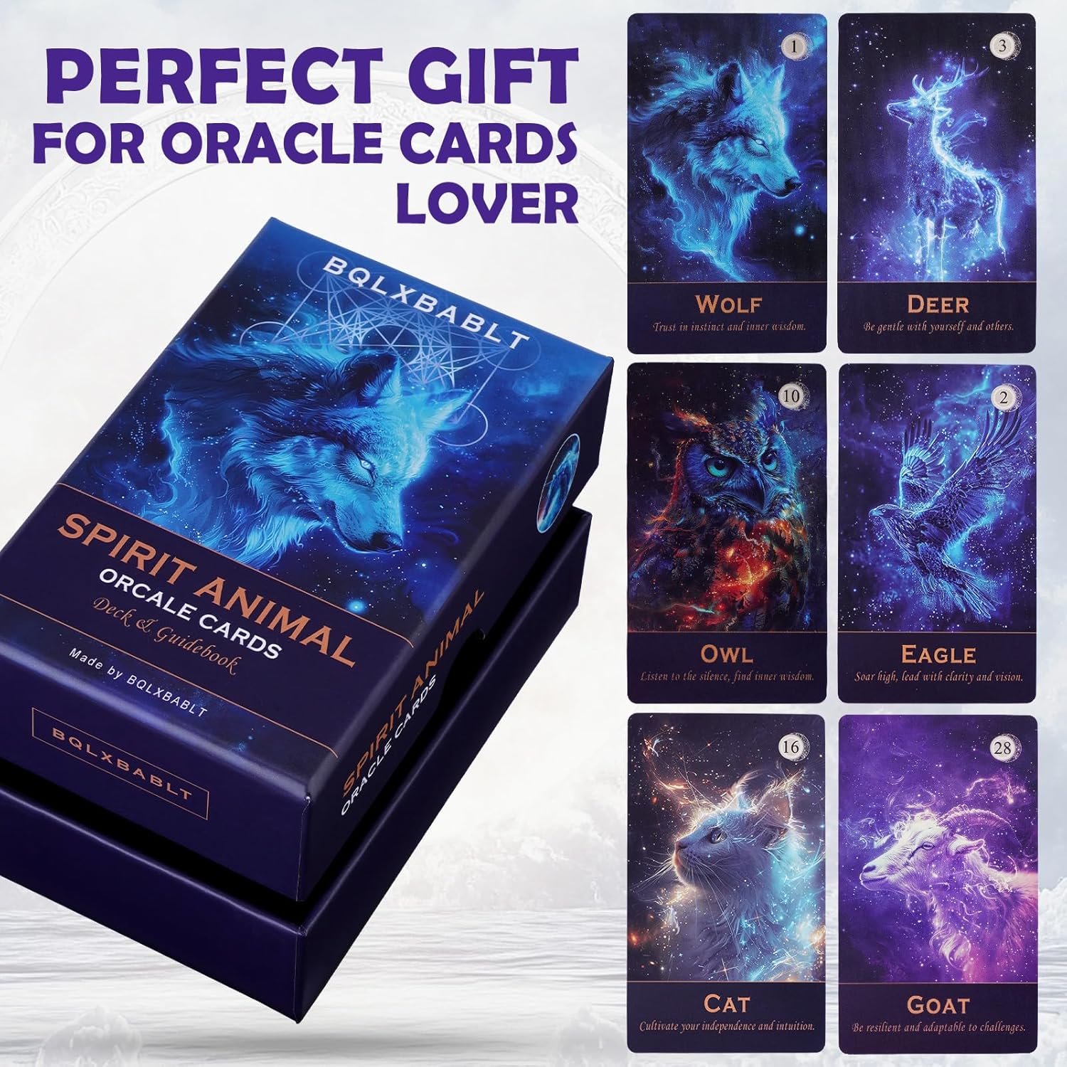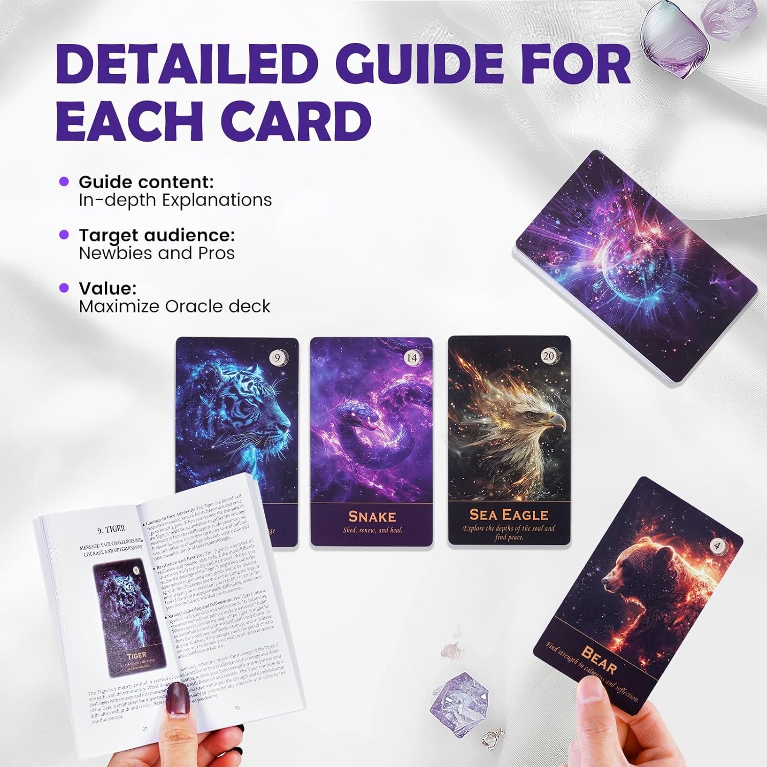Spirit Animal Oracle Cards with Guide Book for Beginners Animal Tarot Deck with Meanings on Them for Women Standard Size Detailed Guidebook Included