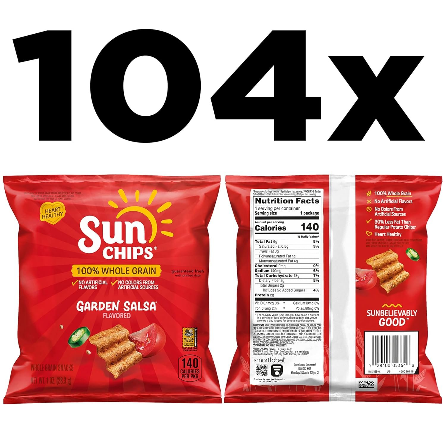 - Includes 104 (1 oz) bags of SunChips 100% Whole Grain Chips, Garden Salsa flavor