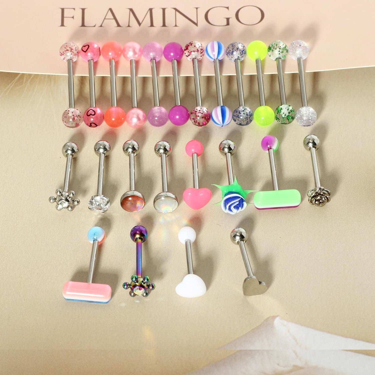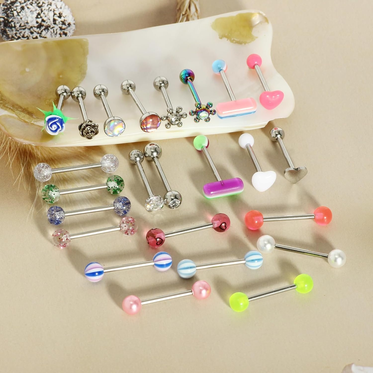 - Each Order Includes 35PCS 14 Gauge Stainless steel Acrylic Externally Threaded Straight Nipple Tongue Barbell Ring Body Piercing Jewelry