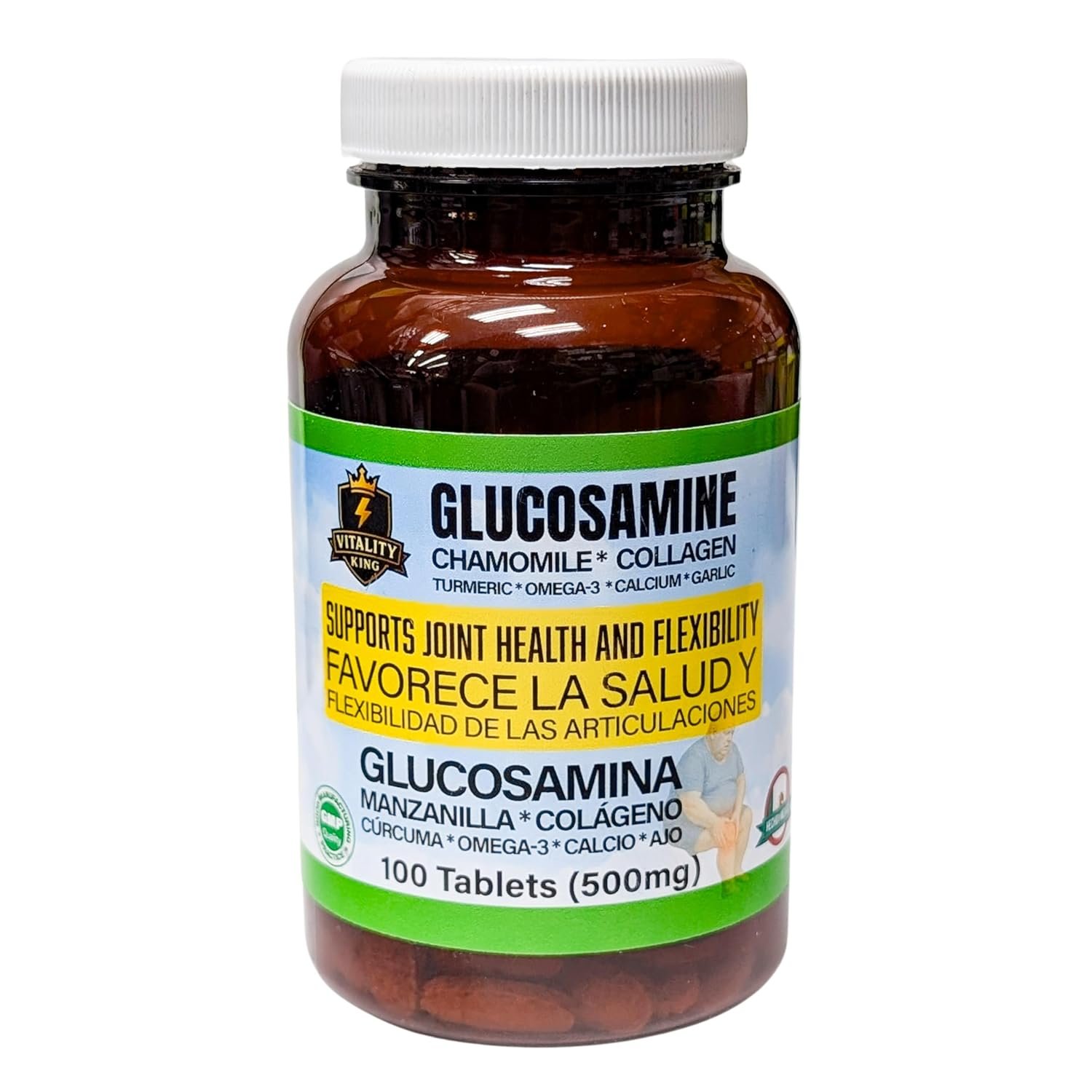 Suplemento para el Apoyo Articular con Glucosamina, Manzanilla, Colágeno, Cúrcuma y AJO | Glucosamine Chamomile Collagen Turmeric Garlic Joint Support Supplement