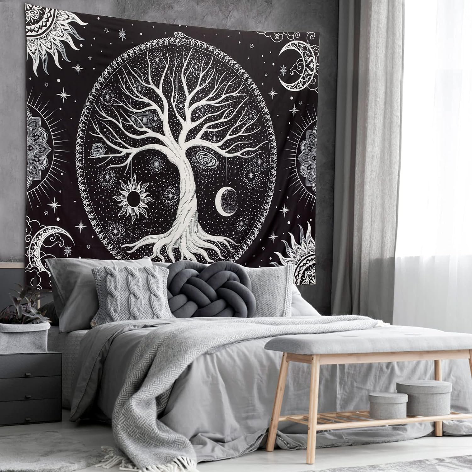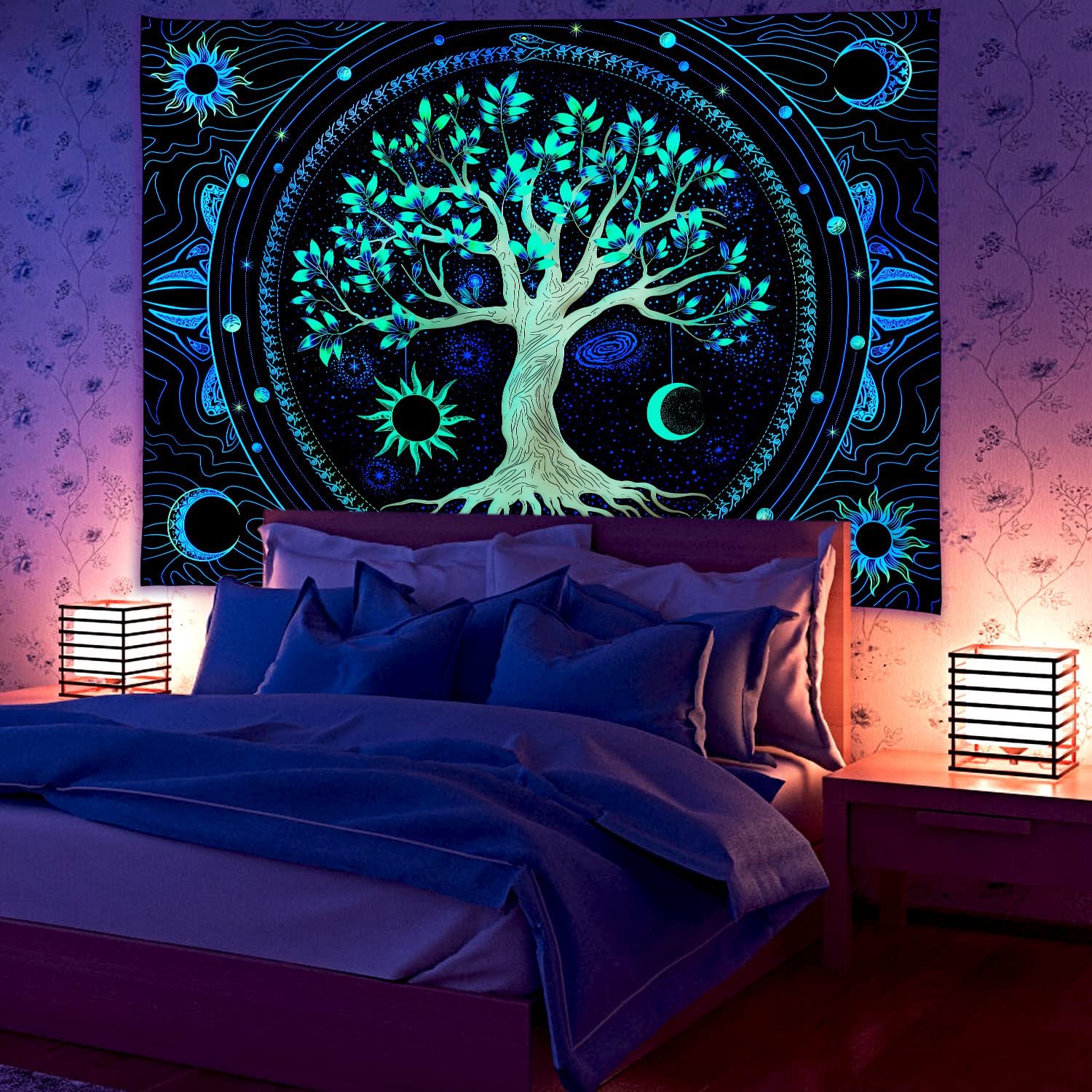34 reviews for Tapestry for Bedroom Aesthetic Black Light Tree of Life Tapestrys UV Reactive Trippy Talestry Colorful Wall tapistry Sun Moon Space Tapestries Green Forest Wall Hanging Decor…