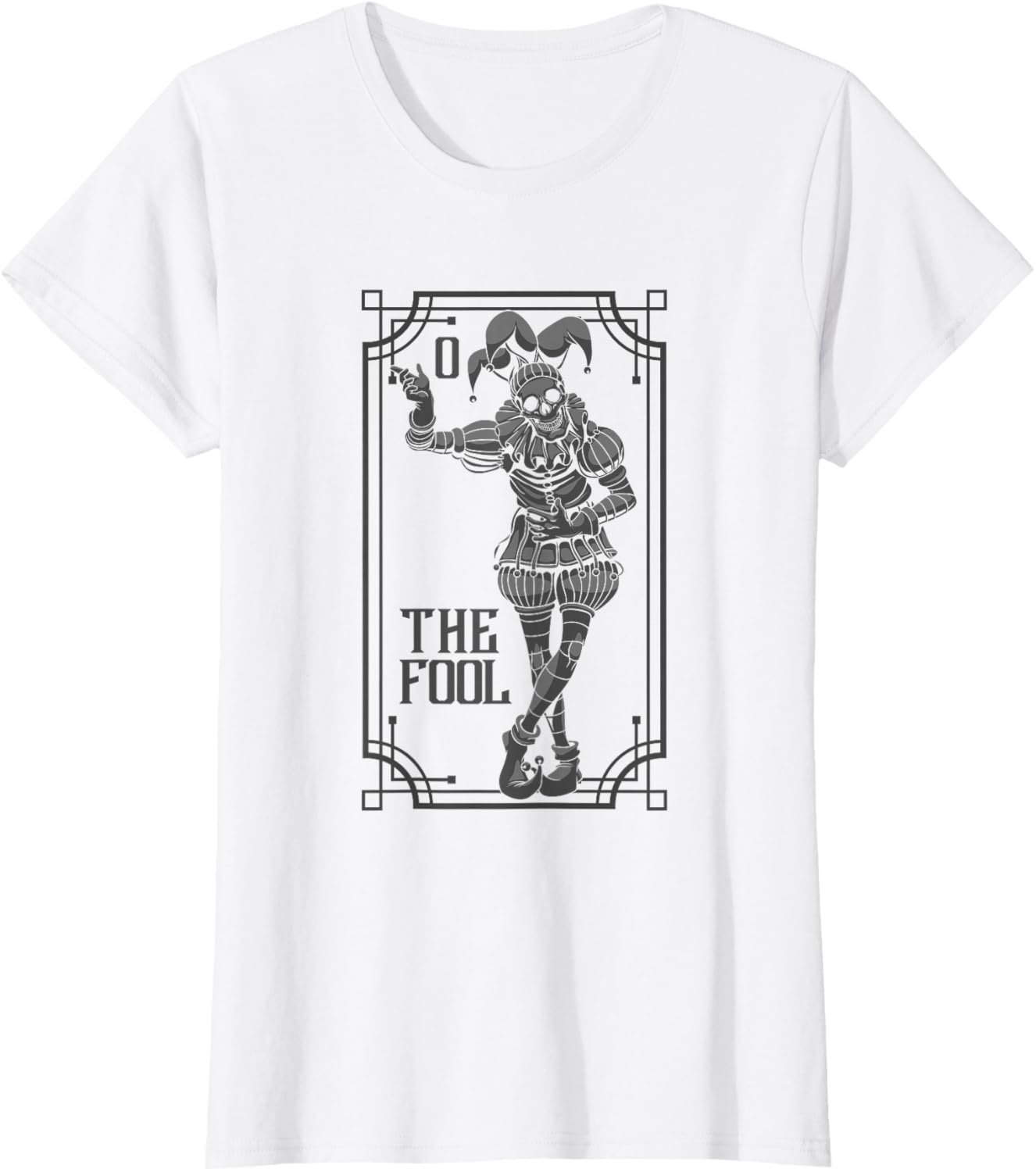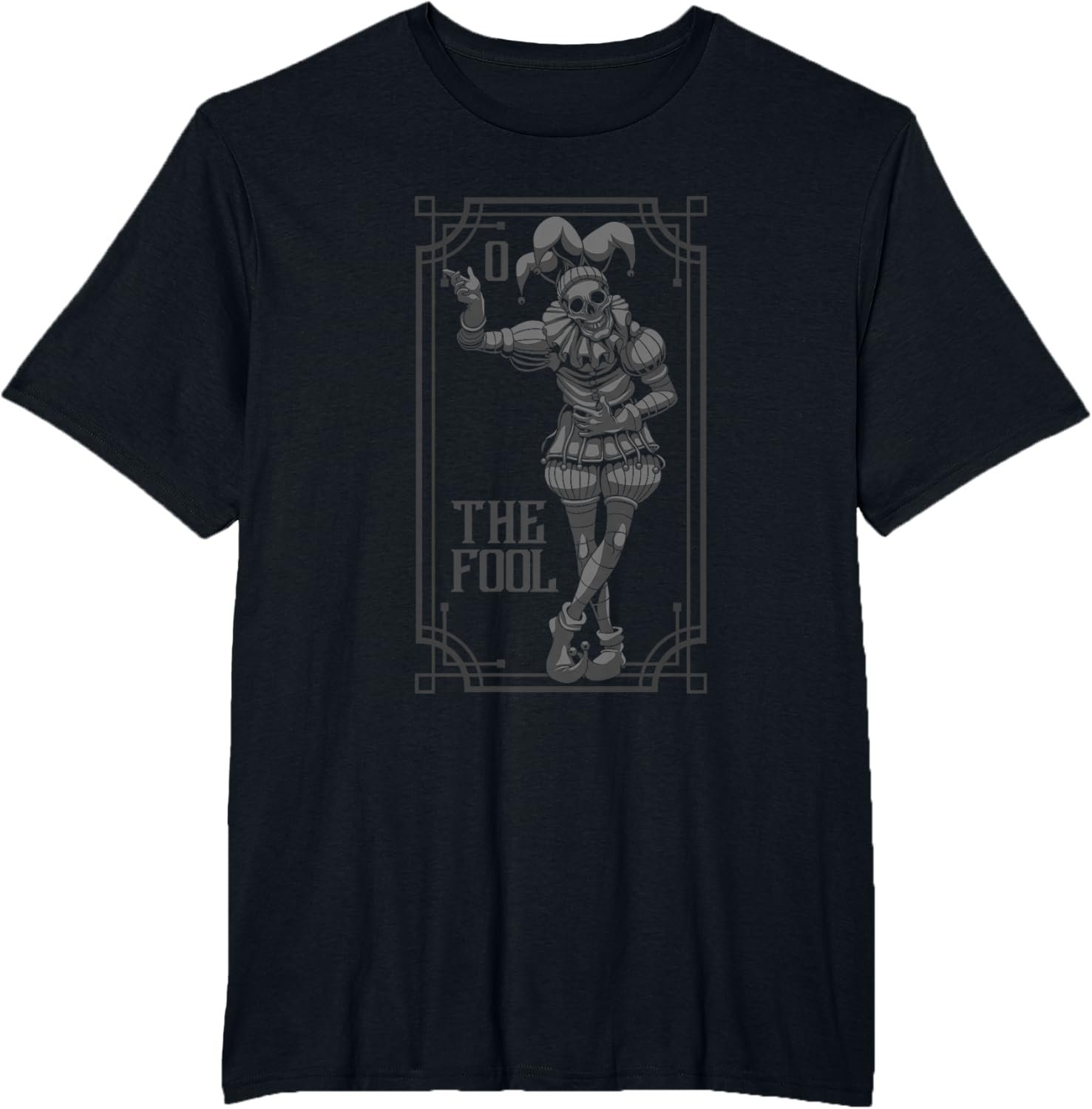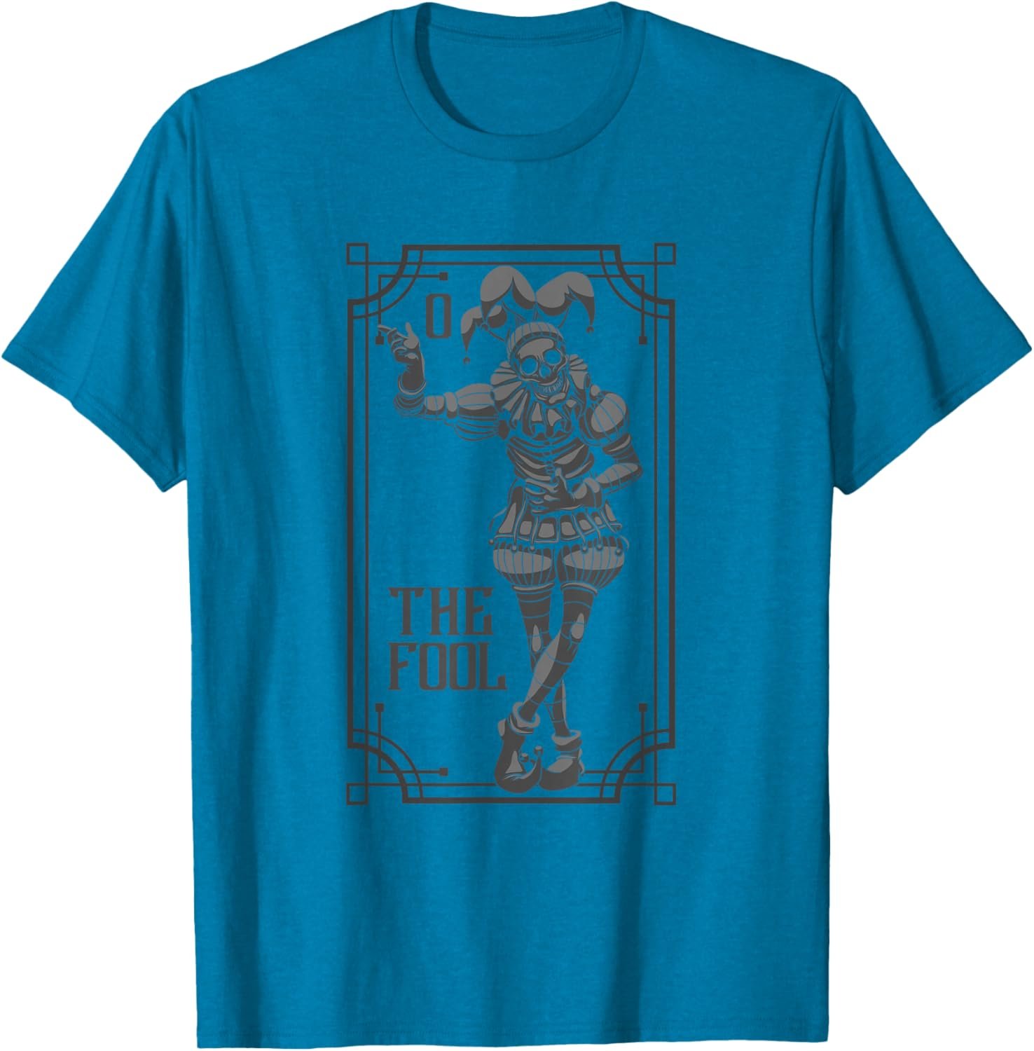 - All men and women who are fans of blackcraft and witchcraft will have an instant connection to this witchy t-shirt. It features gothic artwork of the fool jester skeleton tarot card. Also, palm reader and fortune teller will love this tarot shirt.