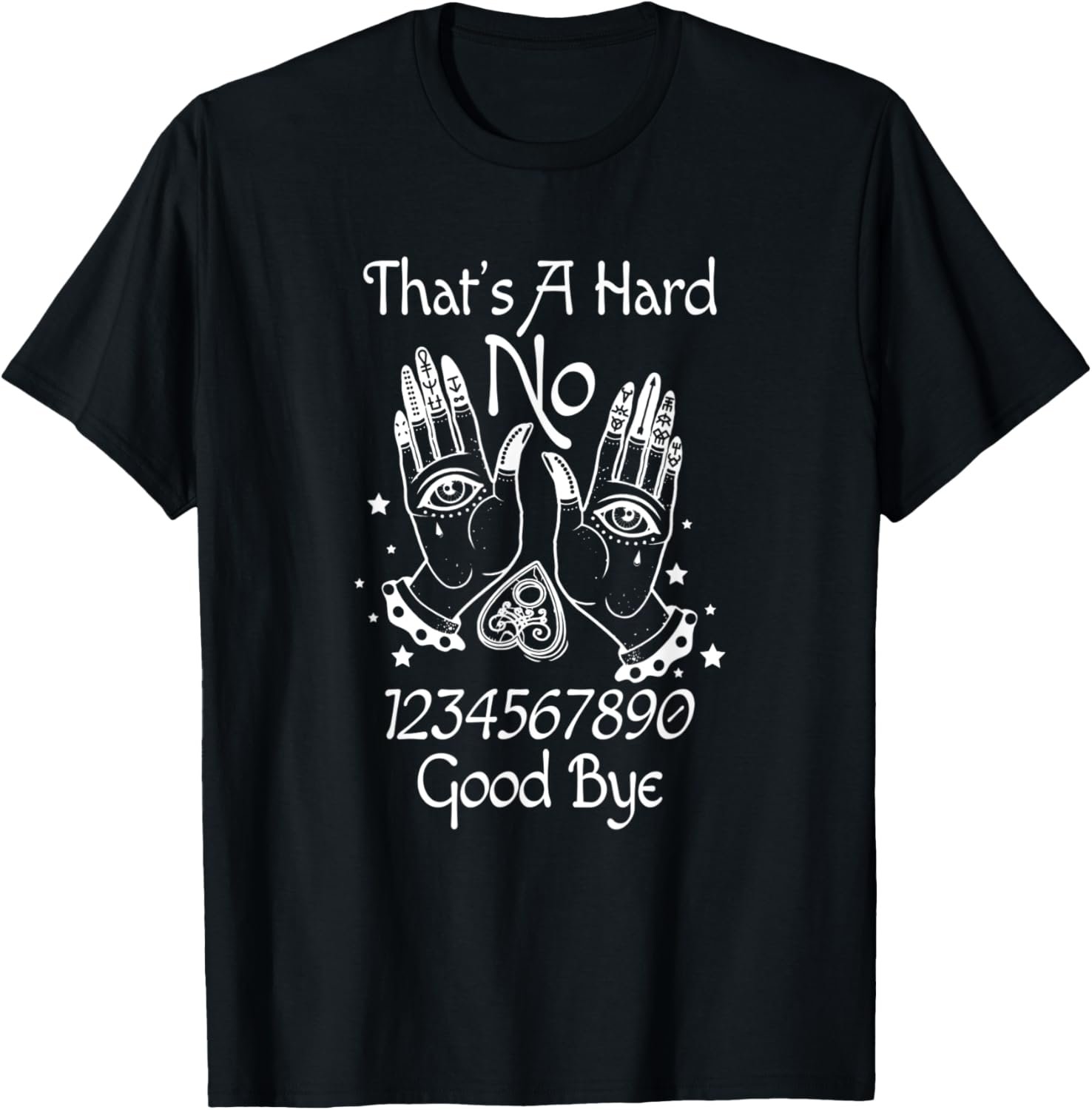 - Are you a fortune teller? Or do you know someone who is? This That’s A Hard No 1234567890 Good Bye That’s A Hard No 1234567890 Good Bye tee, featuring Hamsa hands, a Ouija board is what will make its owner standout for sure!