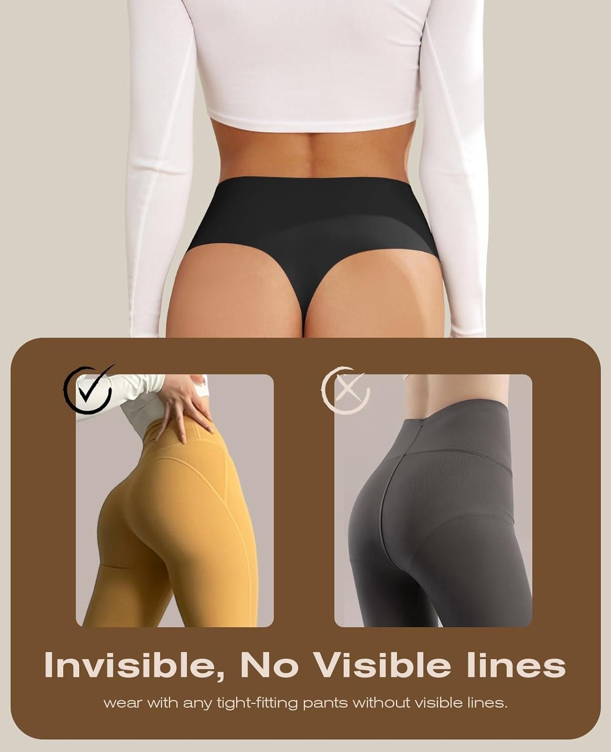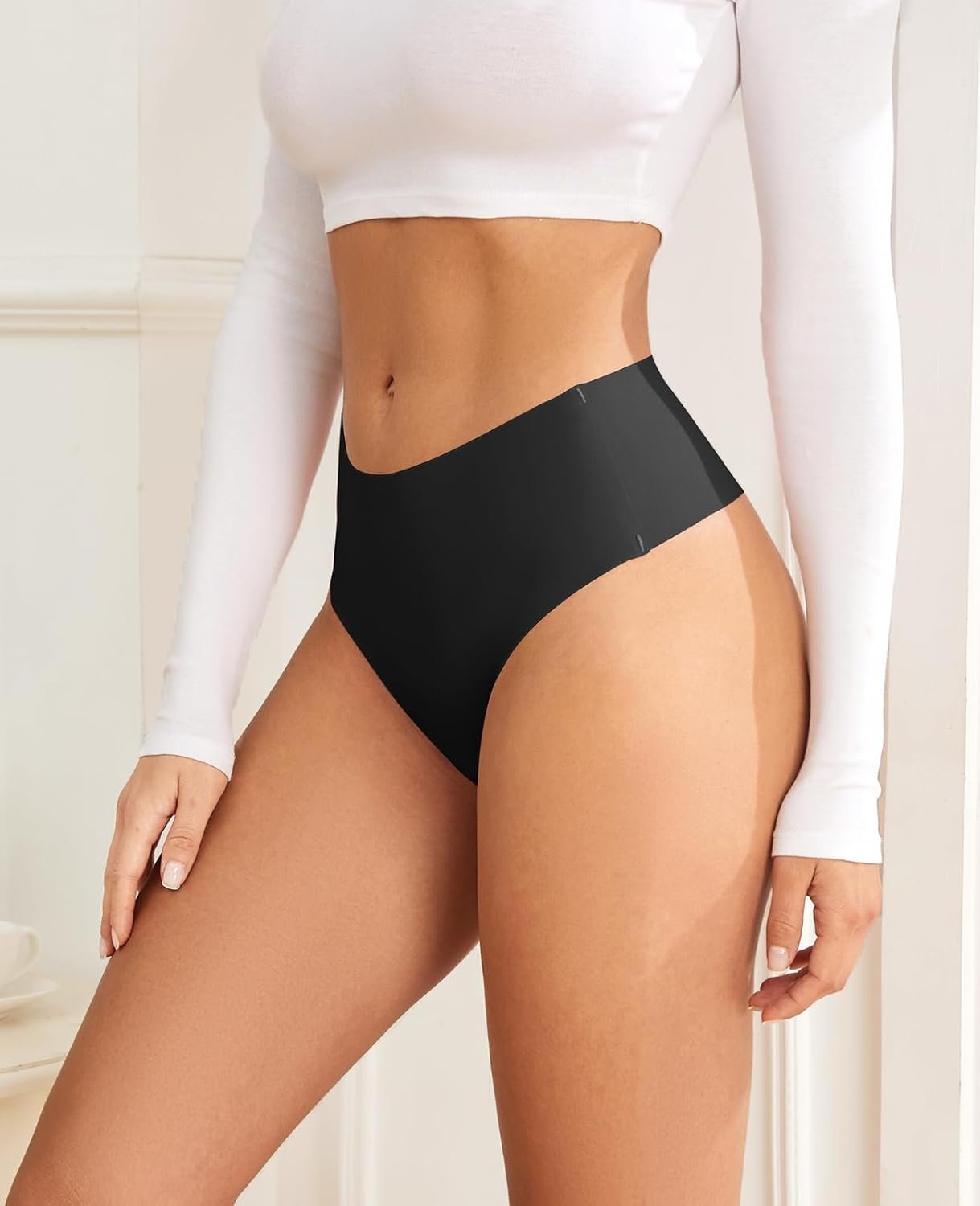- High-Waisted Elegance: Elevate your comfort with our women’s underwear collection, featuring high-waisted thongs meticulously designed to stay in place, providing a seamless fit for leggings, yoga pants, jeans, and every occasion where invisibility is essential.