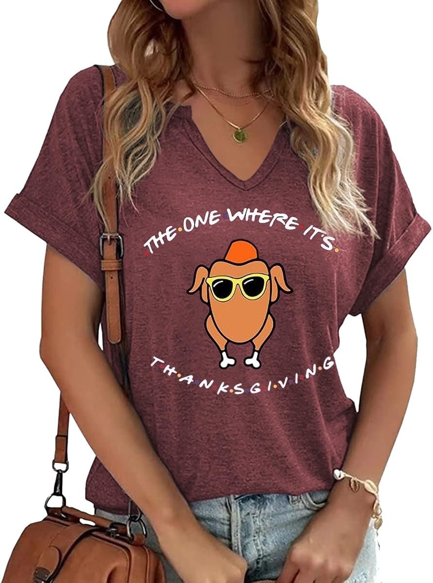 Disclosure30 reviews for TIXOM Womens Fall Halloween Thanksgiving V Neck Shirt Holiday Funny Family Matching Graphic Tee Casual Autumn Tops