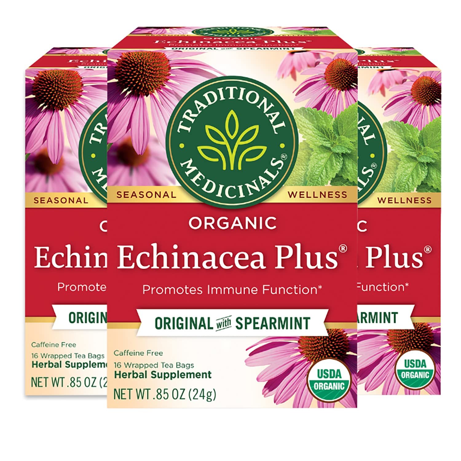 Traditional Medicinals Organic Echinacea Plus with Spearmint Herbal Tea, Promotes Immune Function, (Pack of 3) – 48 Tea Bags Total