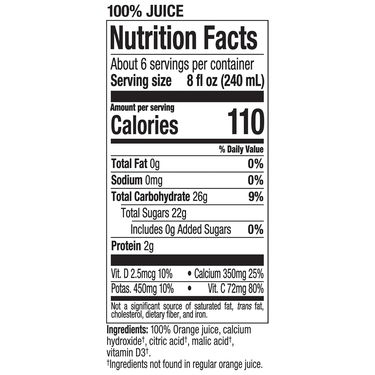 | Flavor | Orange Juice Calcium (No Pulp) |