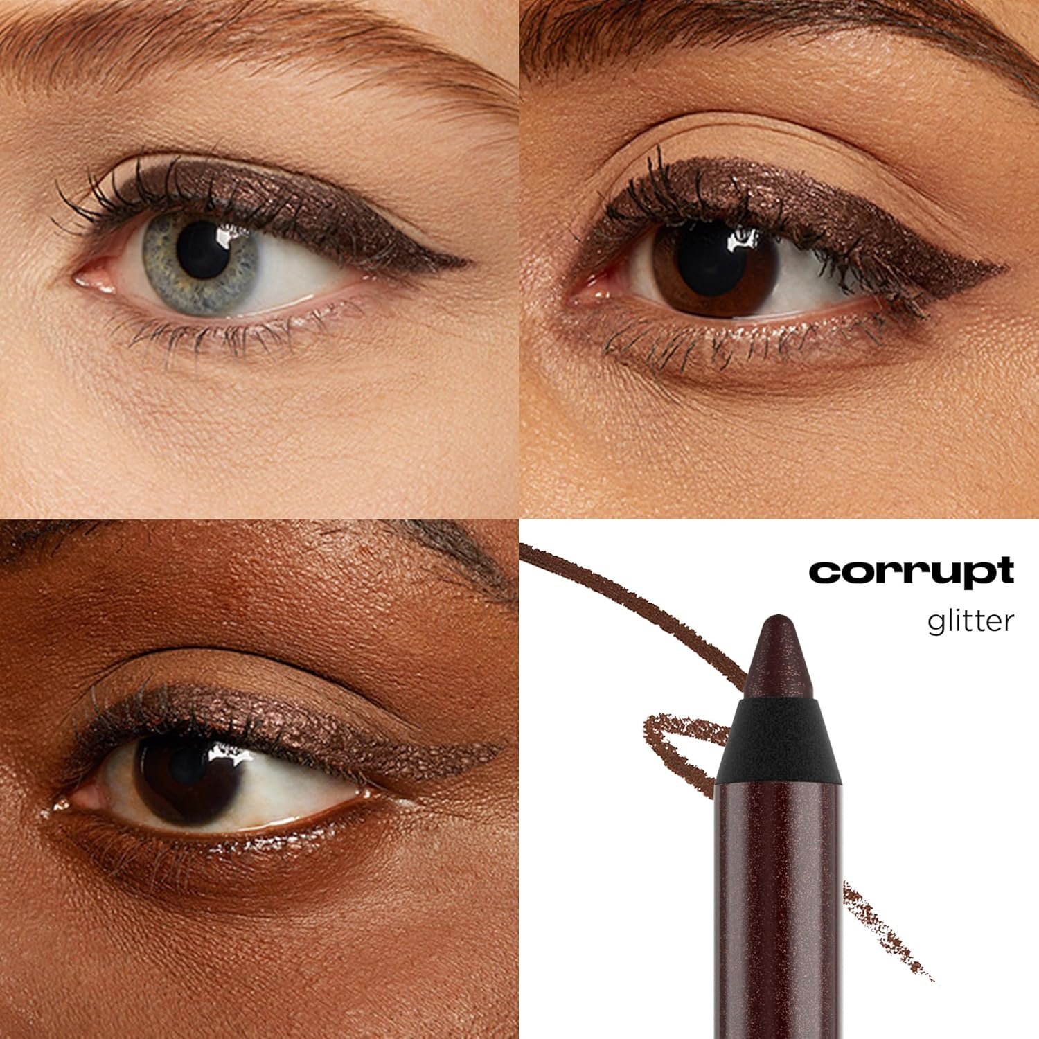 - STAY SHARP – Keep your eyeliner sharp with Grind House Double Barrel Pencil Sharpener. Our vibrant shades come in matte, cream, shimmer, metallic & glitter finishes. Corrupt is dark metallic reddish brown with a silver micro-sparkle & shimmer finish.