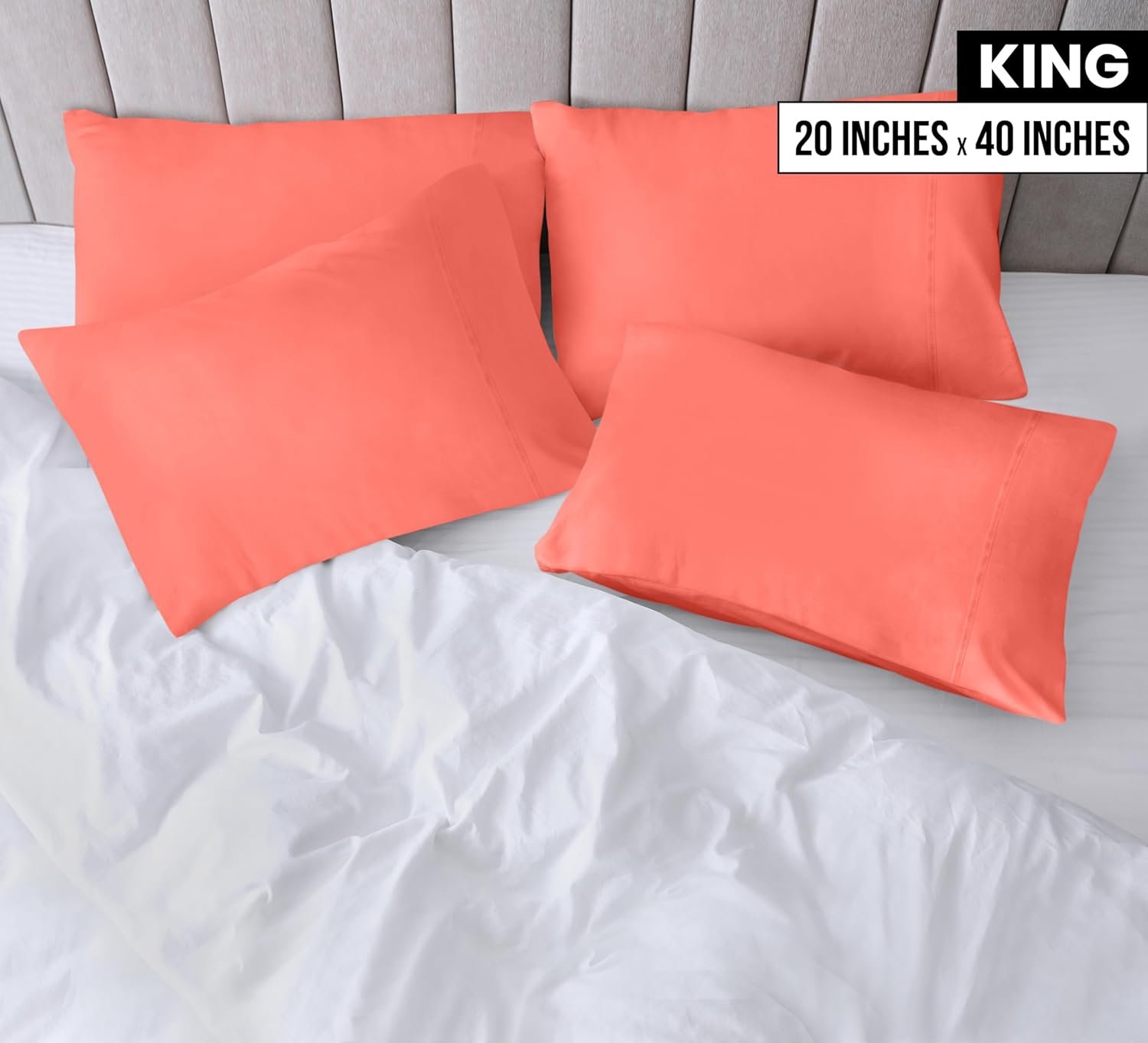 Utopia Bedding King Pillow Cases – 4 Pack – Envelope Closure – Soft Brushed Microfiber Fabric – Shrinkage and Fade Resistant Pillow Covers King Size 20 X 40 Inches (King, Coral)