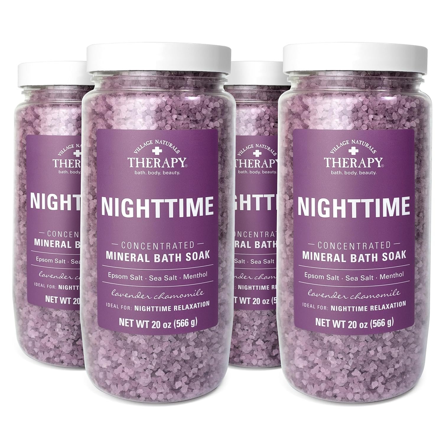 Village Naturals Therapy Nighttime Concentrated Mineral Bath Soak, 20 oz, Pack of 4