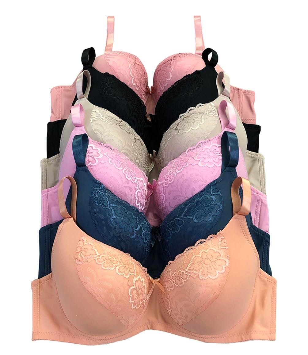 Viola’s Secret 6 Pack of Color Print T-Shirt Bras B Cup C Cup and D Cup