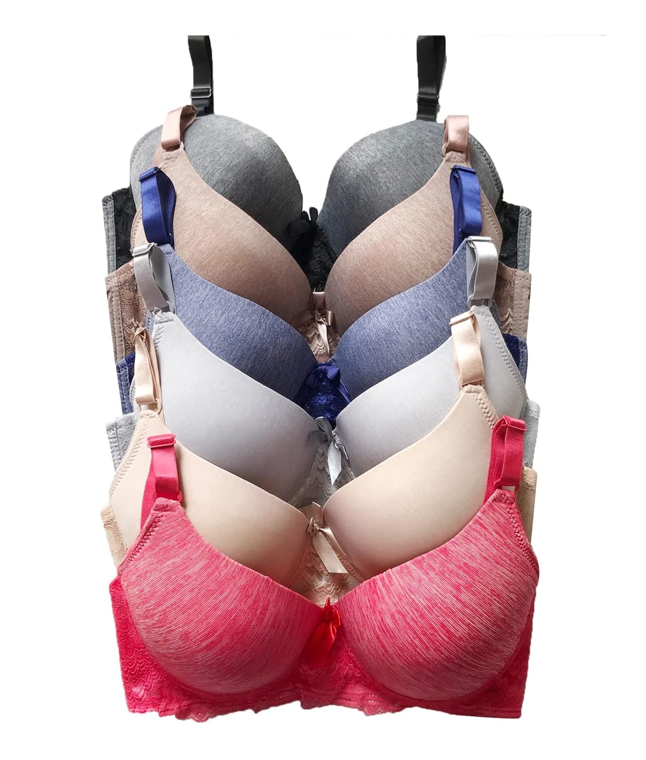 - Get a set of six bras in the colors shown for one price