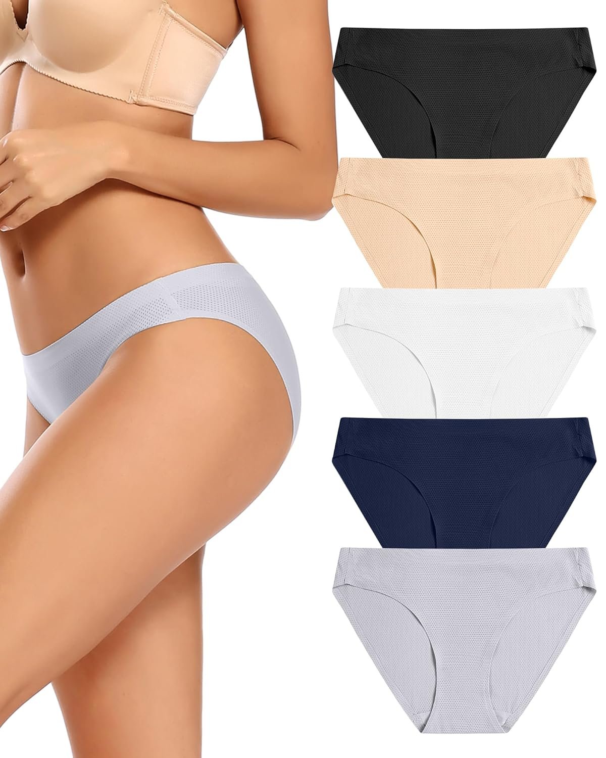 voenxe Women Bikini Underwear,Seamless Breathable Ladies Panties,No Show Comfortable Briefs Undies,Invisible Hipster,5-Pack