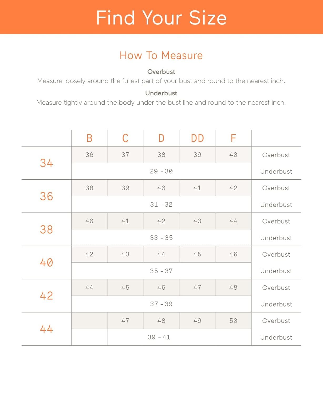 I found this particular style at Walmart. Walmart had a 40 B (too small) & a 40 D (too big) That’s how I arrived at my “best” size 40 C.