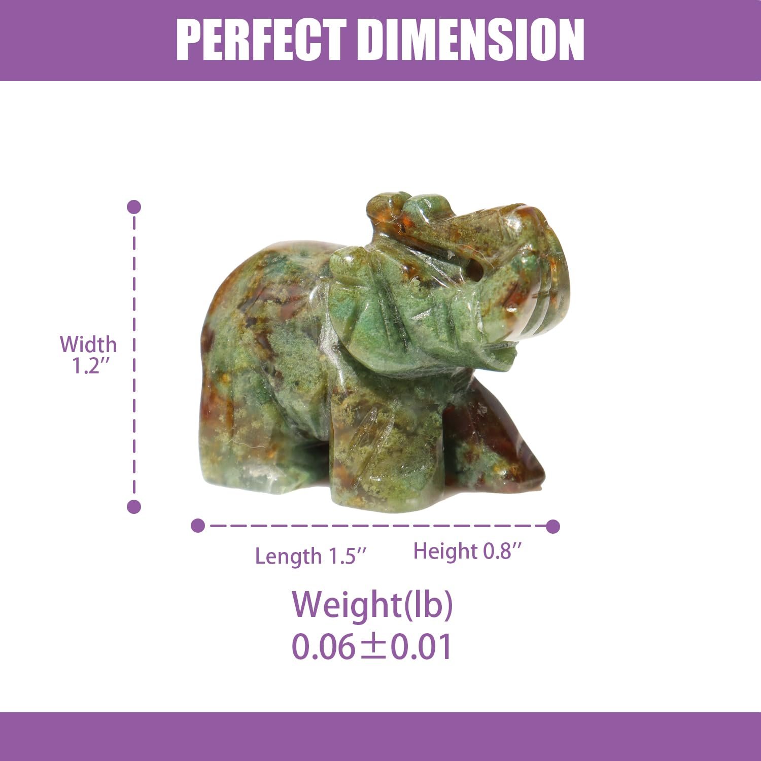 - Natural crystal elephant figurine made from genuine natural materials, our elephant figurine measuring 1.5 inches (approx. 3.8cm), this mini crystal elephant is easy to carry and store. Connect with nature in a meaningful way with our hand carved elephant. Size: 1.5*0.8*1.2inch approx. Weight: 0.07lb approx