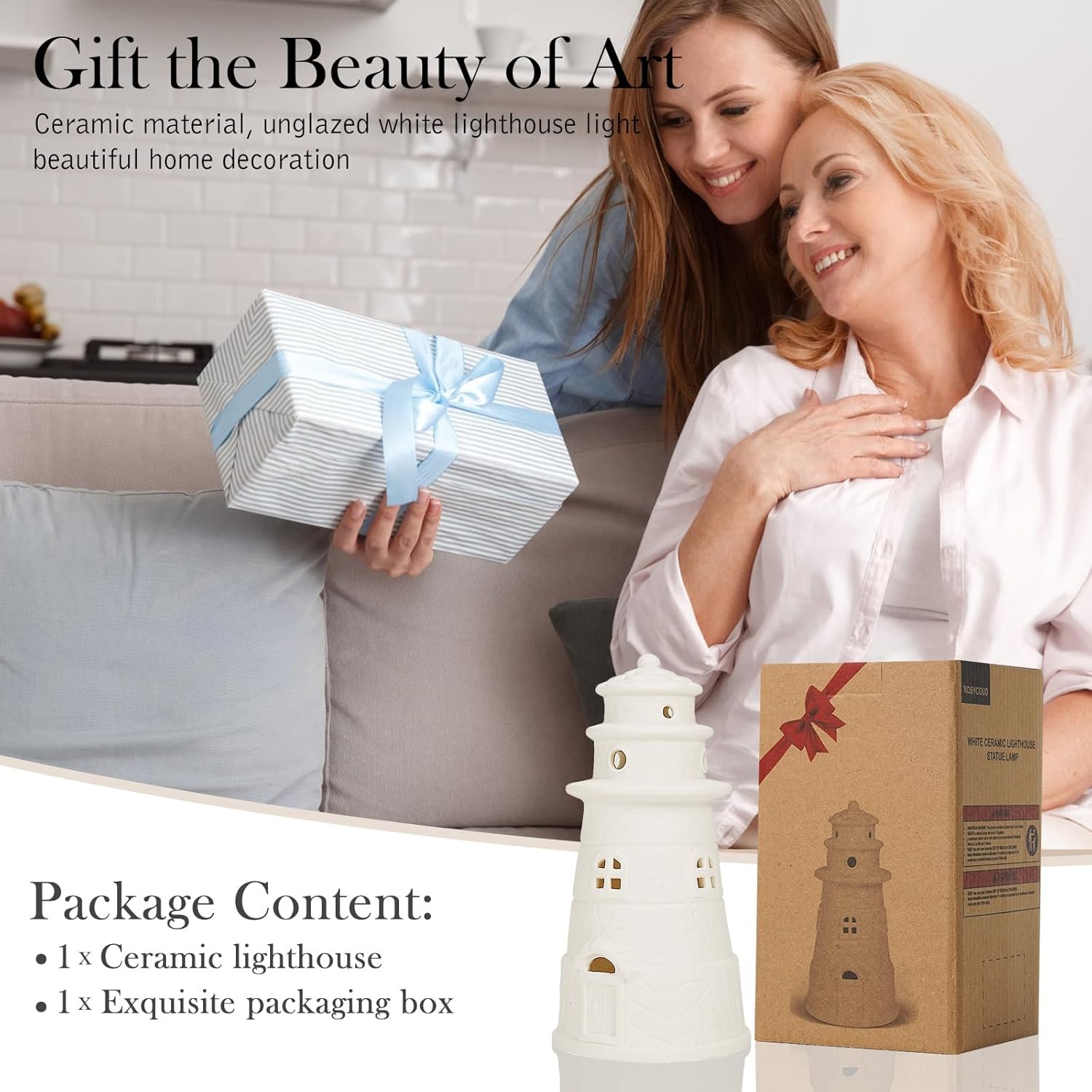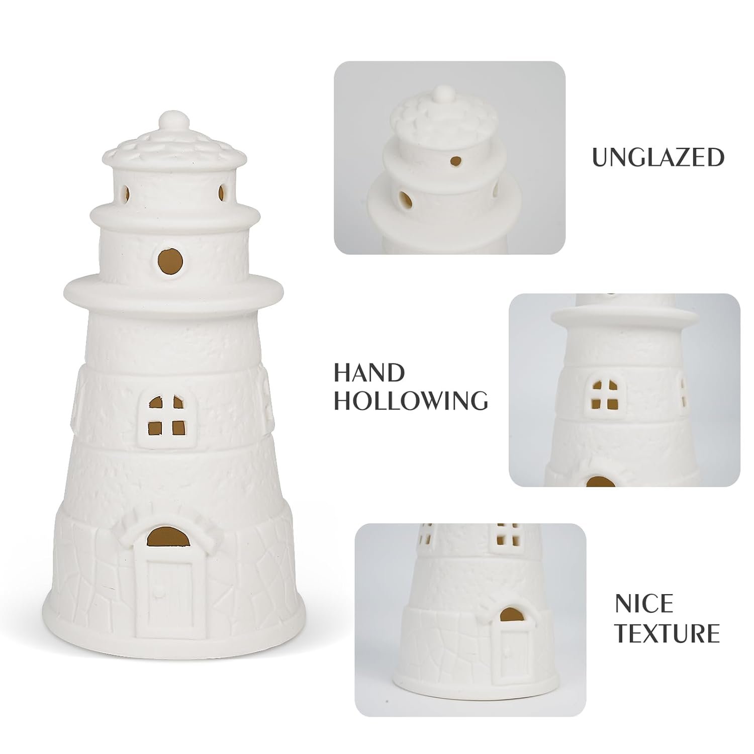 - Glowing Lighthouse Decor:Crafted from premium high-fired ceramic clay, the ROSYCOUD Lighthouse showcases raw, unglazed textures that highlight its intricate artisan details. Seamlessly integrated LED warm-white lighting emits a soothing glow, perfect as a comforting nightlight or for creating a cozy ambiance in any room