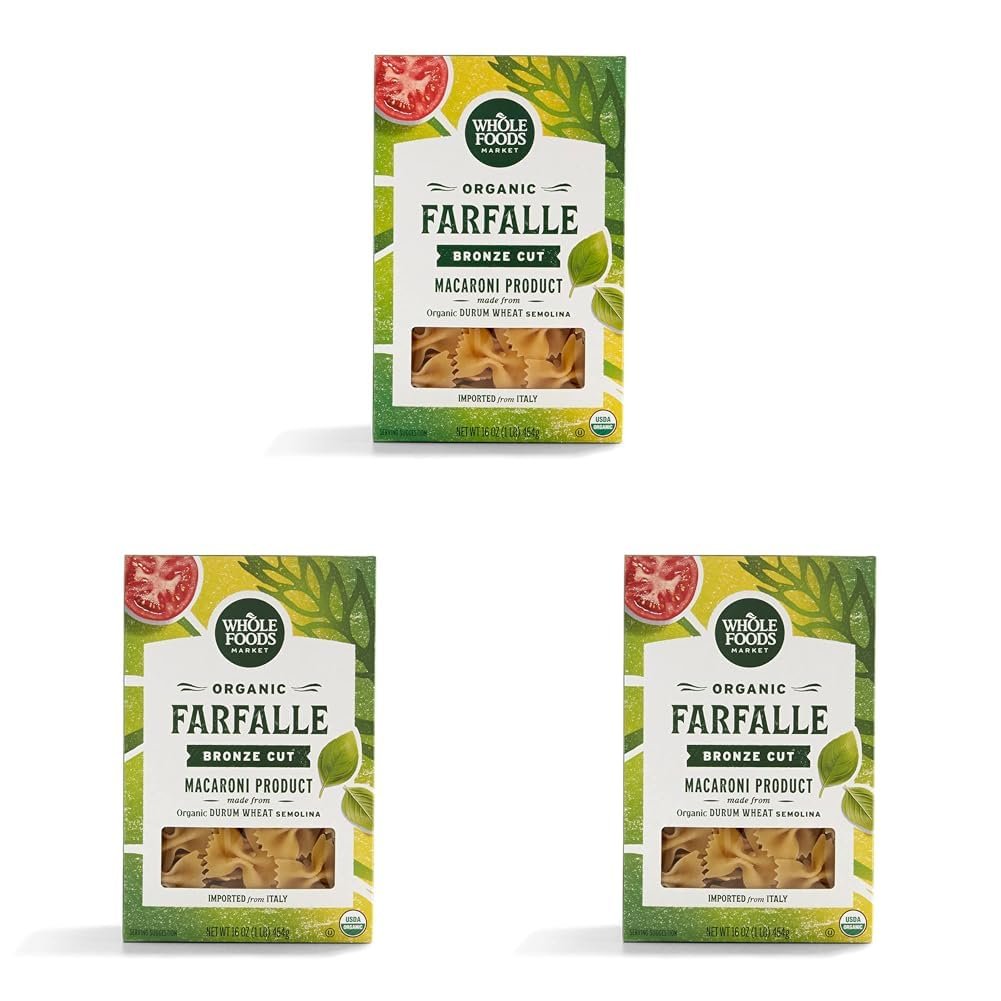 Whole Foods Market, Organic Farfalle, 16 Ounce (Pack of 3)