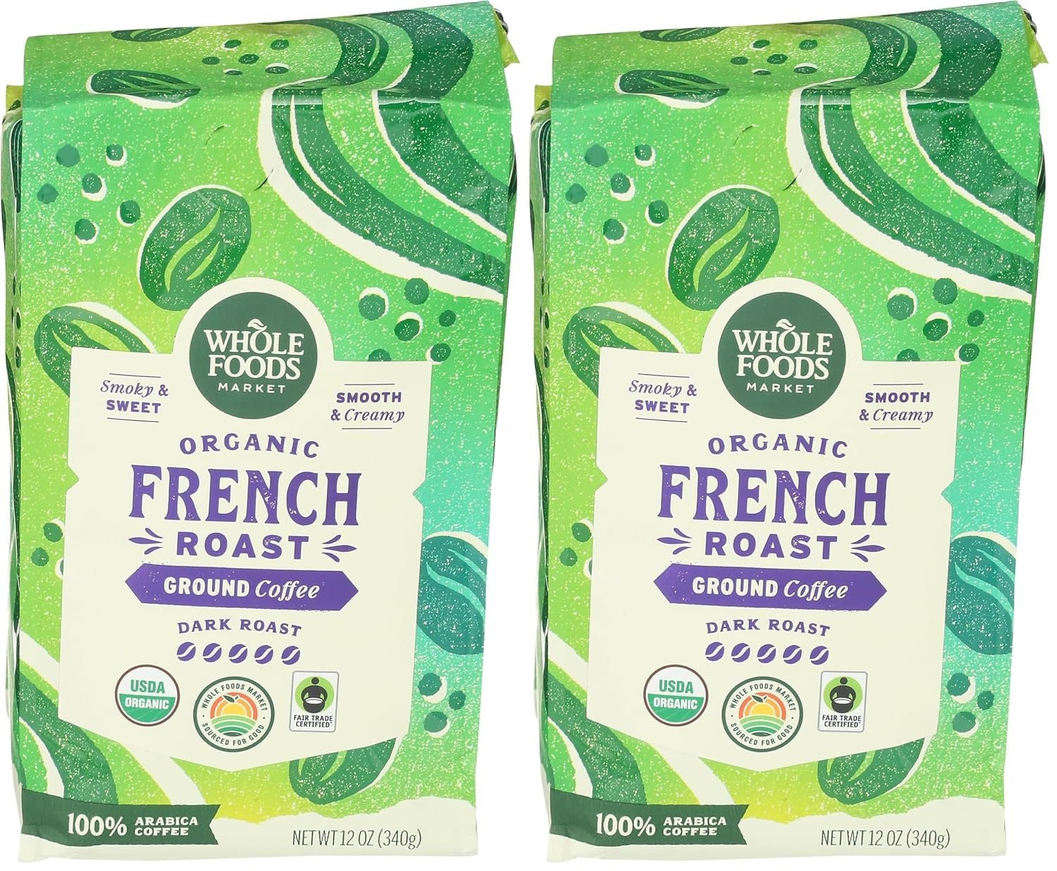 Whole Foods Market, Organic Ground Coffee, Dark French Roast, Smoky & Sweet, Smooth & Creamy, 12 Ounce