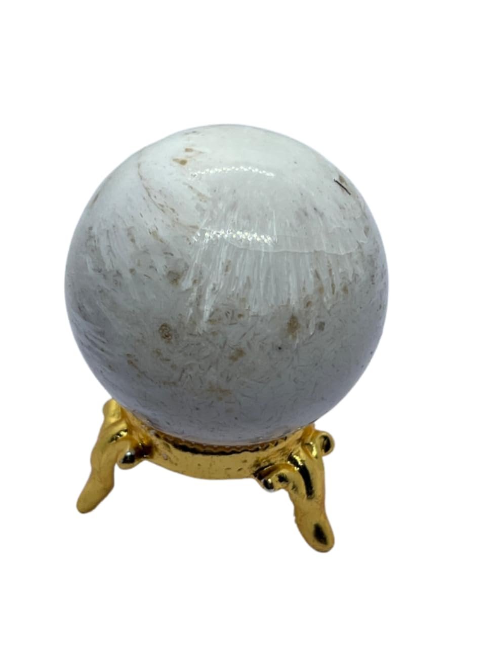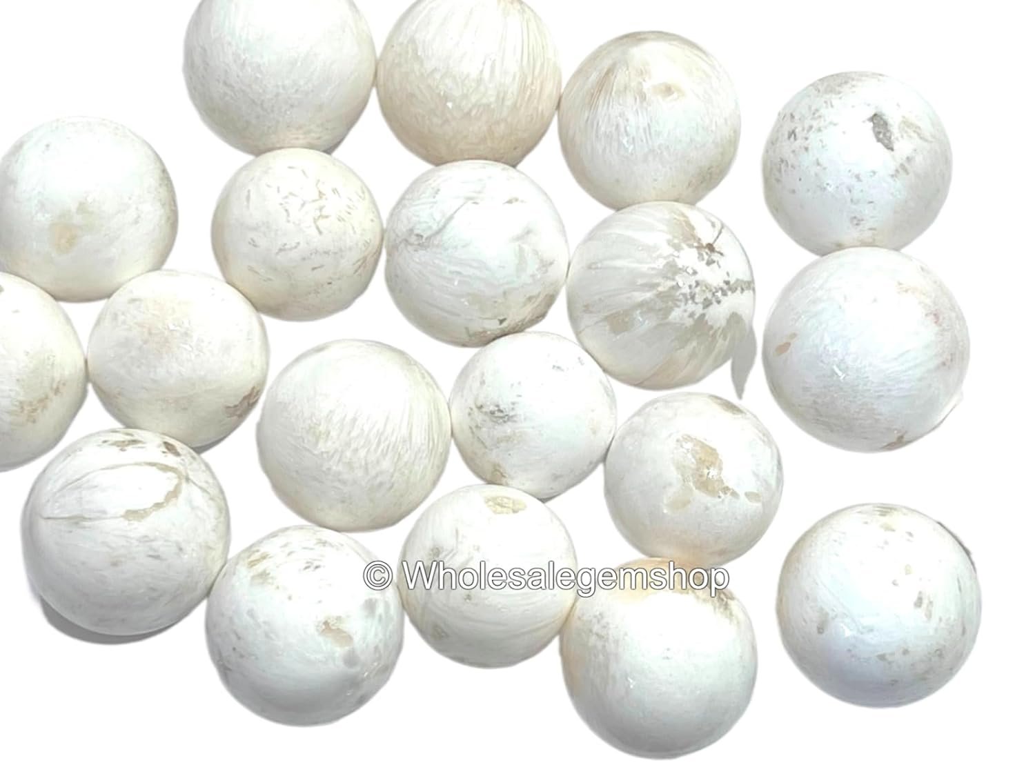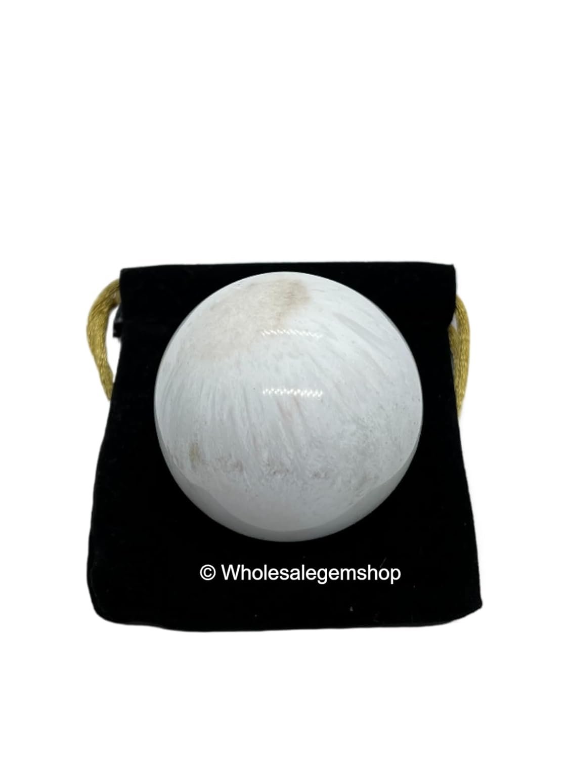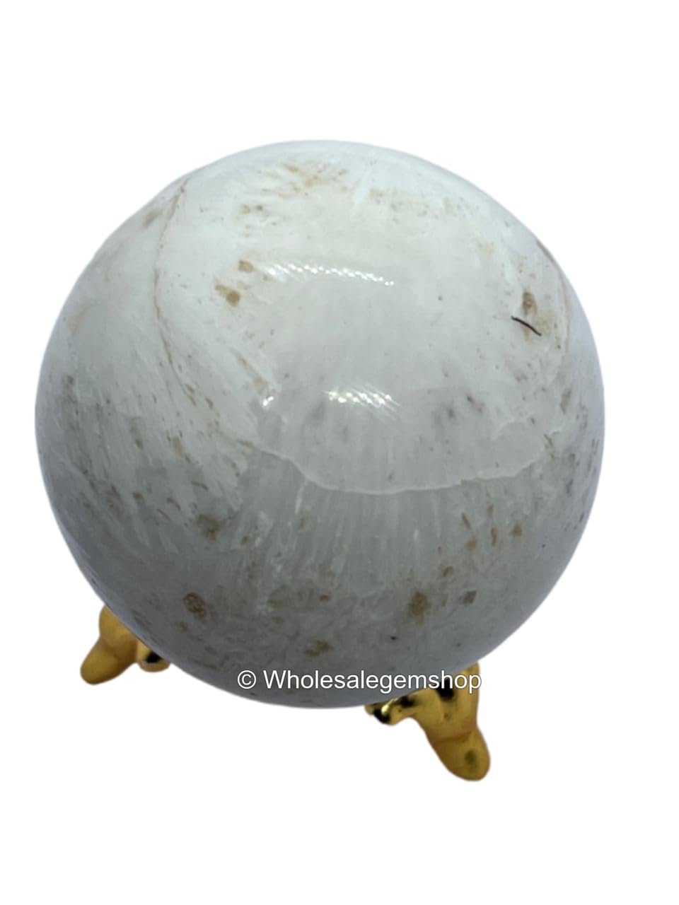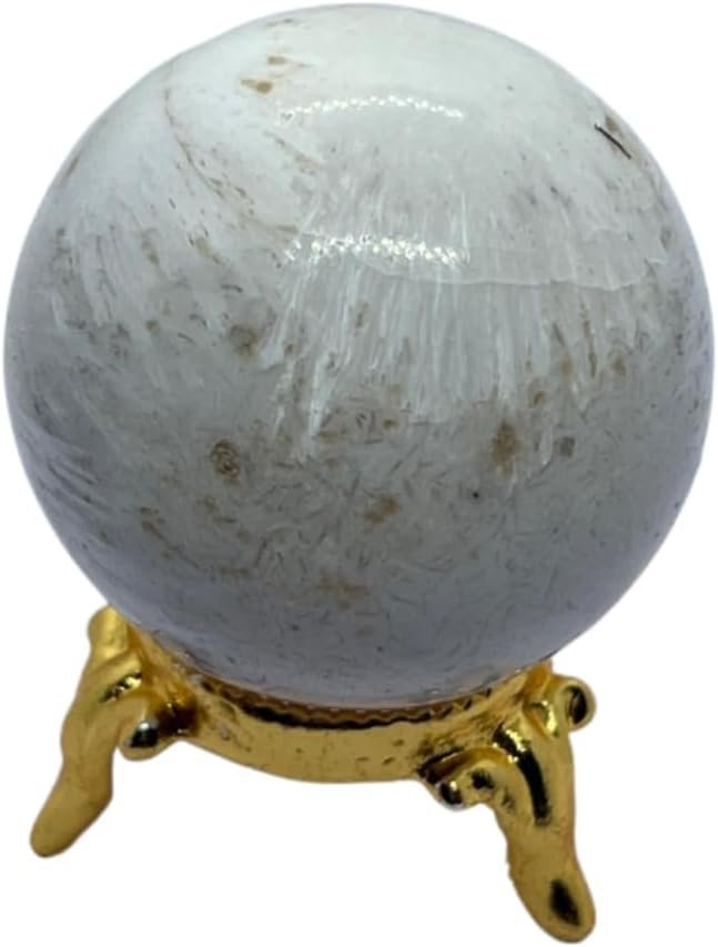 WholesaleGemShop Natural Scolecite Quartz 40-45 mm Ball Sphere Gemstone A+ Hand Carved Crystal Altar Healing Devotional Focus Spiritual Chakra Cleansing Metaphysical Gift Men Women