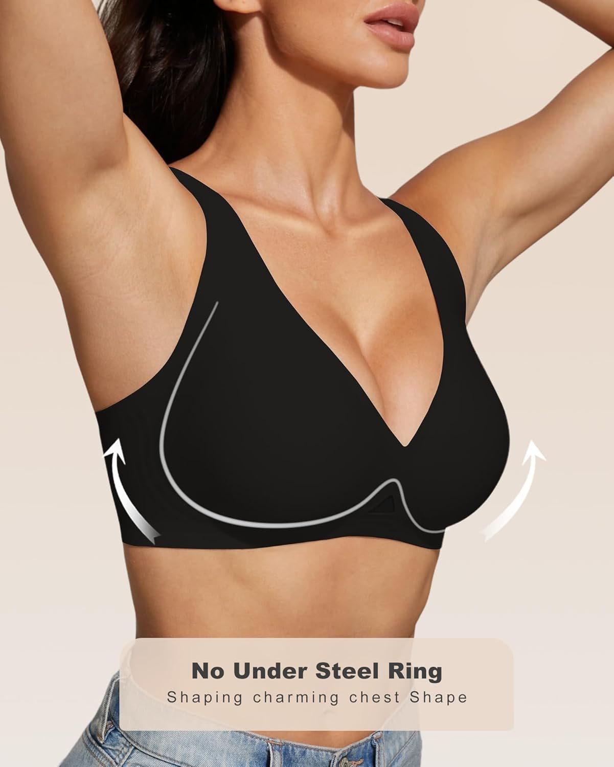 Womens Deep V Wireless Bra No Underwire Seamless Comfort Support Tshirt Push Up Bralette for Everyday/Sleep
