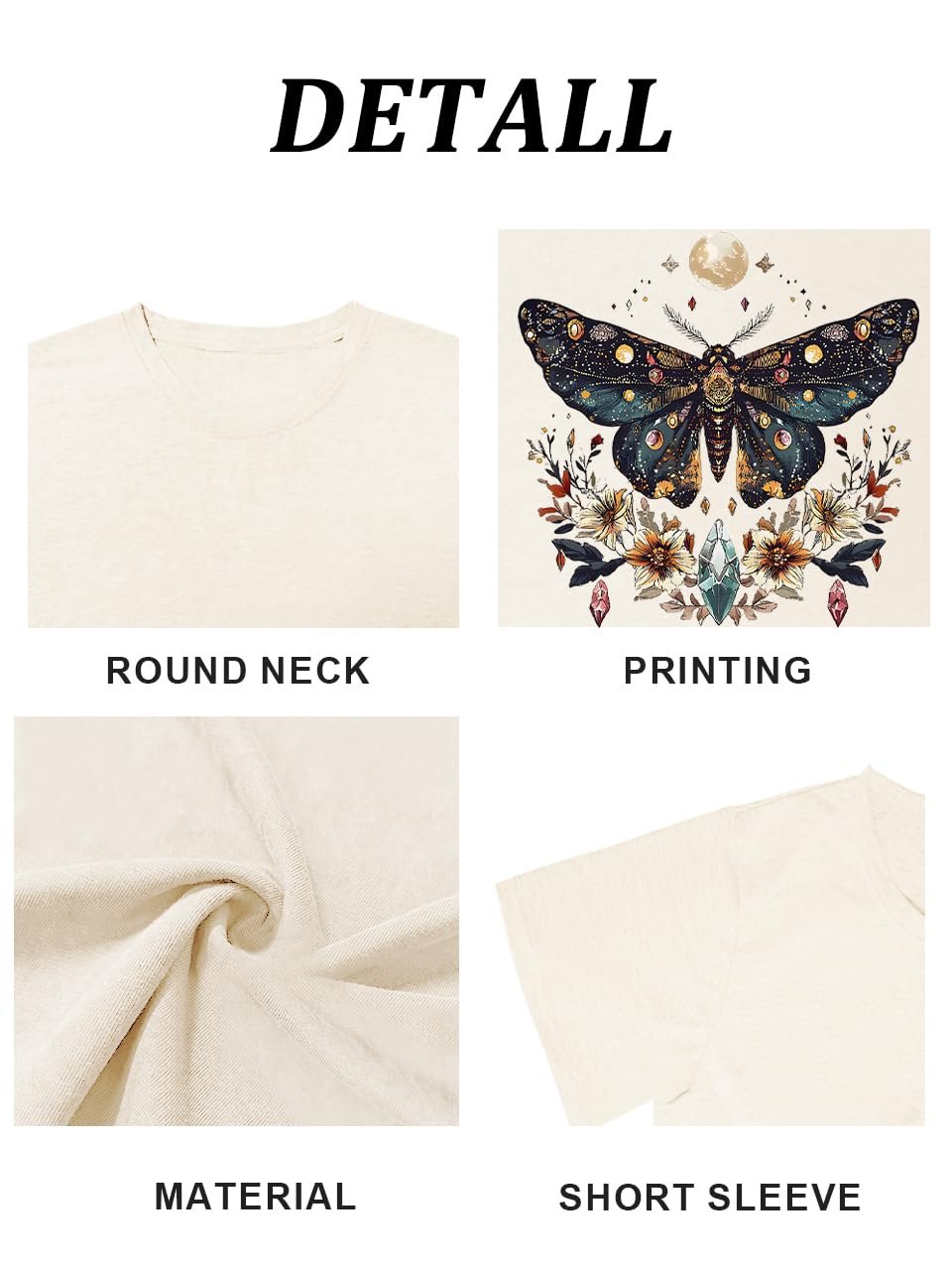 Disclosure10 reviews for Women Vintage Moth T Shirts Mystical Moon Cottagecore Shirts Funny Witchy Graphic Tees Short Sleeve Tops