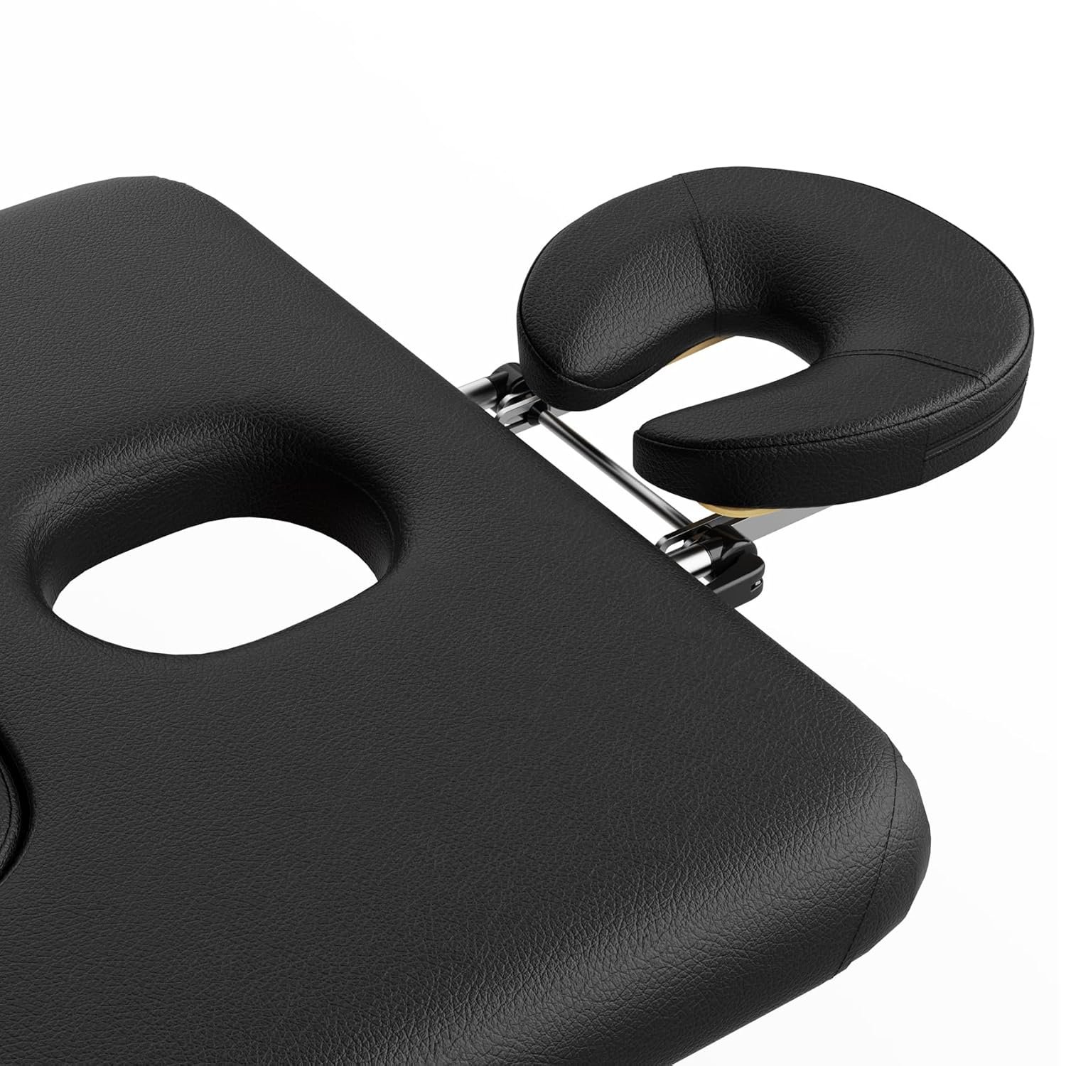 The face pillow is adjustable and well-padded, which makes it more comfortable for clients during longer treatments. It also has a nice cut-out in the table for extra face support, which is a thoughtful touch. The legs can be adjusted to different heights, which is great for people who need to change positions or work at different angles. It stays steady and doesn’t move or wobble when in use, even with heavier clients.