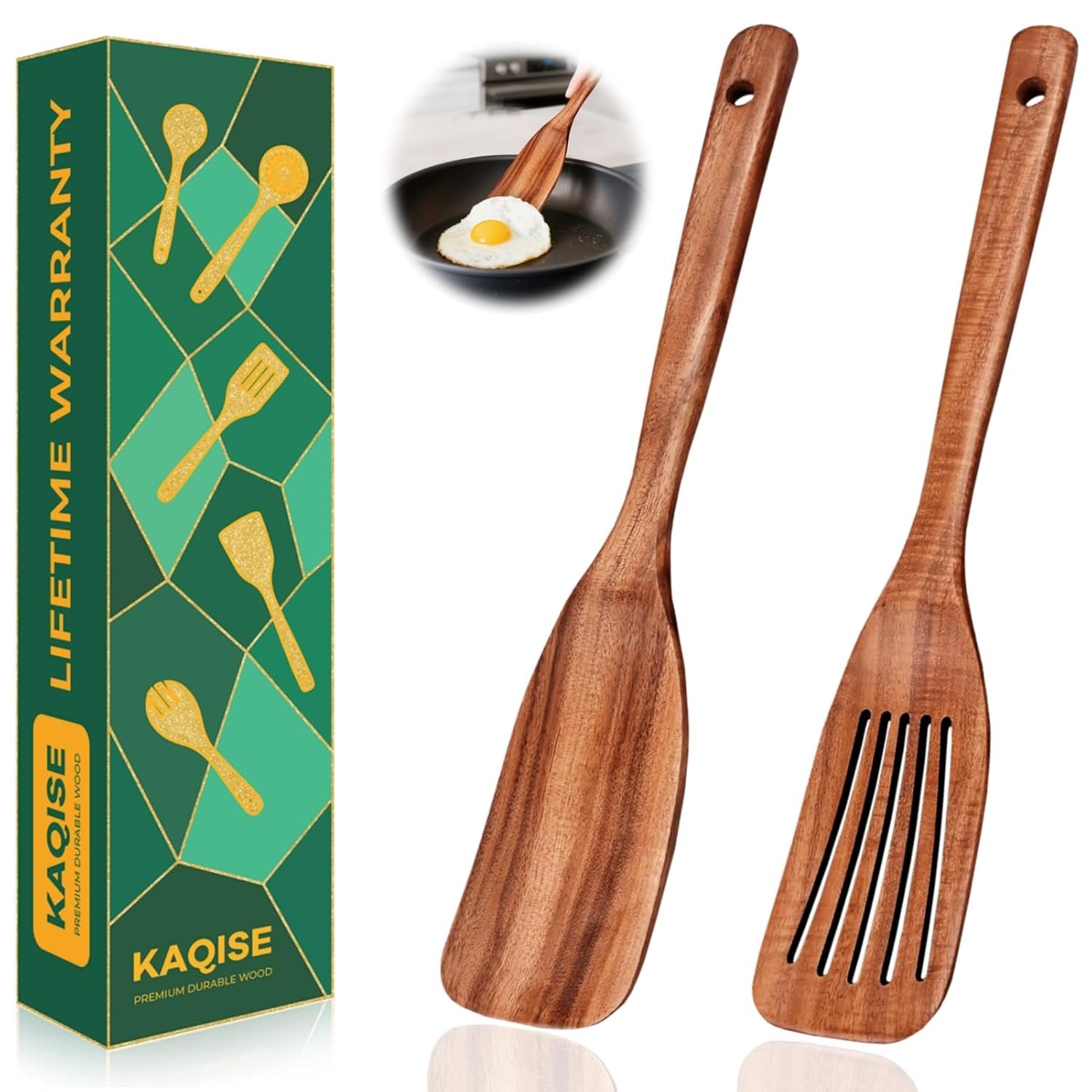 24 reviews for Wooden Spatula for Cooking, 2-Piece Teak Wood Spatula Set for Nonstick Pans, Kitchen Utensils with Flat Turner&Slotted Spatula, Heat Resistant Natural Solid Wood Cooking Tools