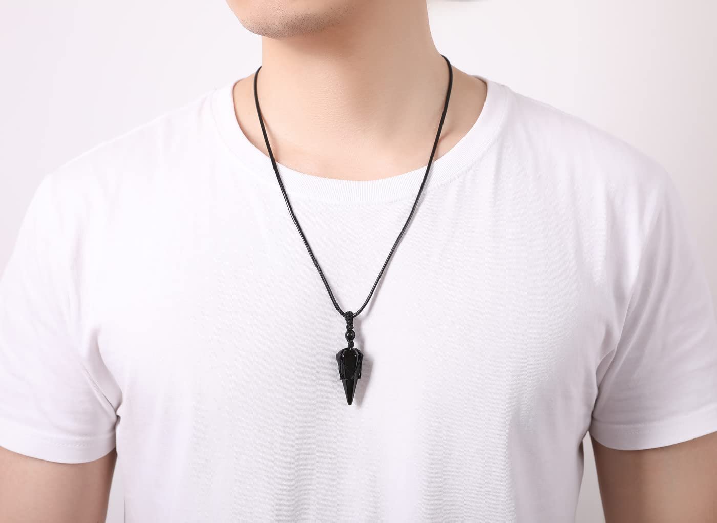 26 reviews for XIANNVXI Healing Crystal Stone Pointed Necklace Adjustable Black Rope Natural Gemstone Pendant Necklaces Jewelry for Men Women