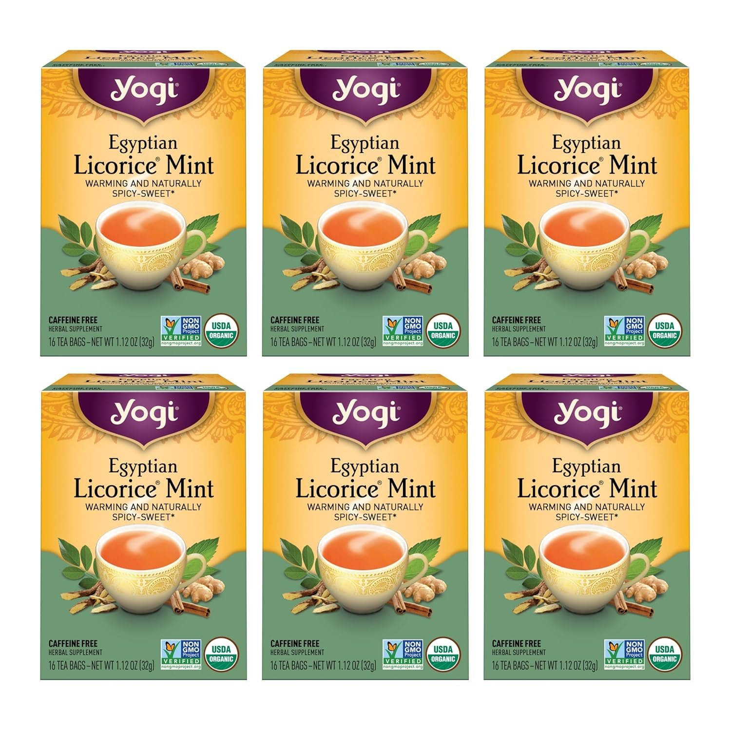Yogi Tea – Egyptian Licorice Mint Tea (6 Pack) – Warming and Naturally Spicy Sweet – Caffeine Free – 96 Organic Herbal Tea Bags
