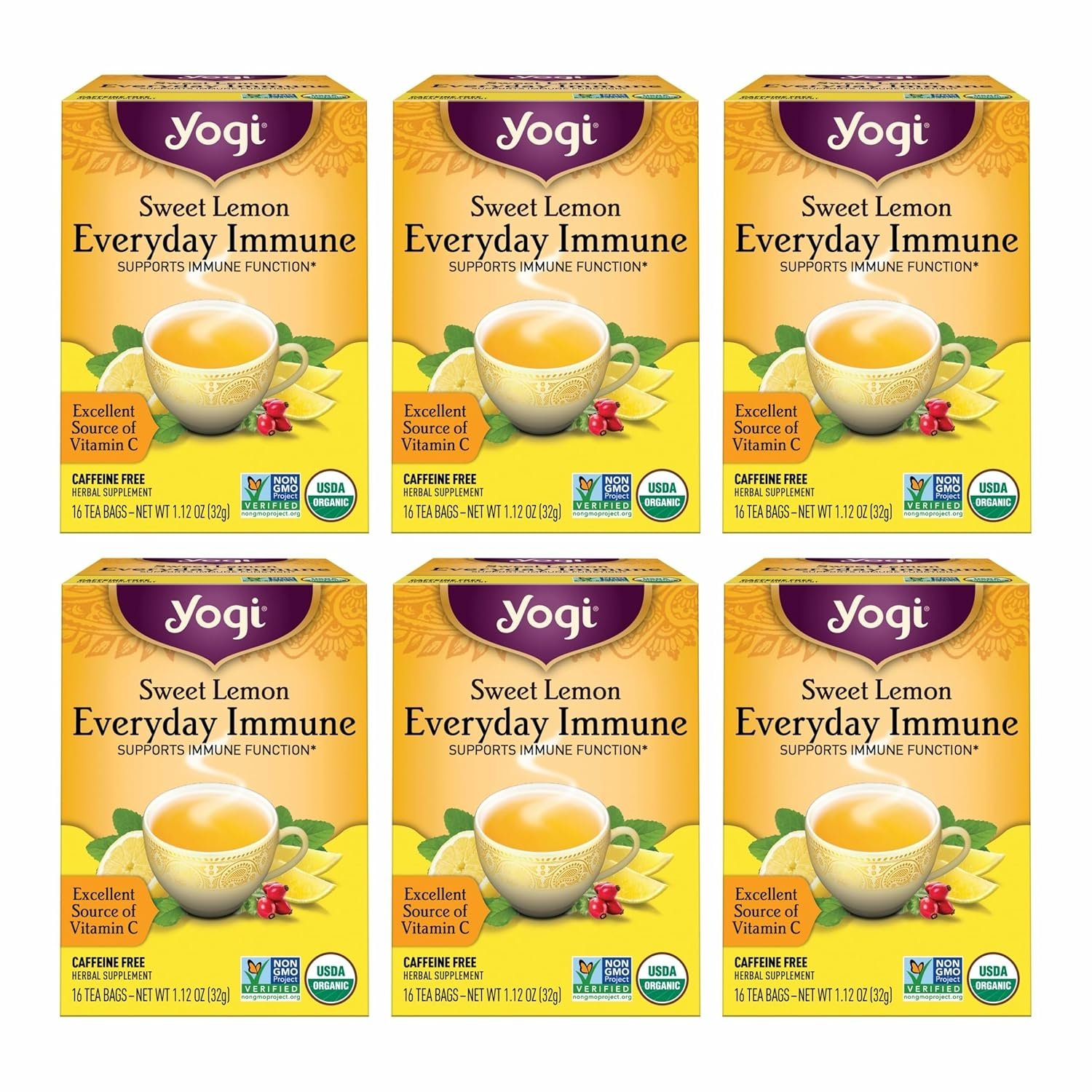 14 reviews for Yogi Tea Sweet Lemon Everyday Immune – 16 Bags per Pack (4 Packs) – Daily Immune Support Tea – Delicious Lemon Tea Bags – Includes Tulsi, Lemongrass, Rose Hip, Lemon Peel & More
