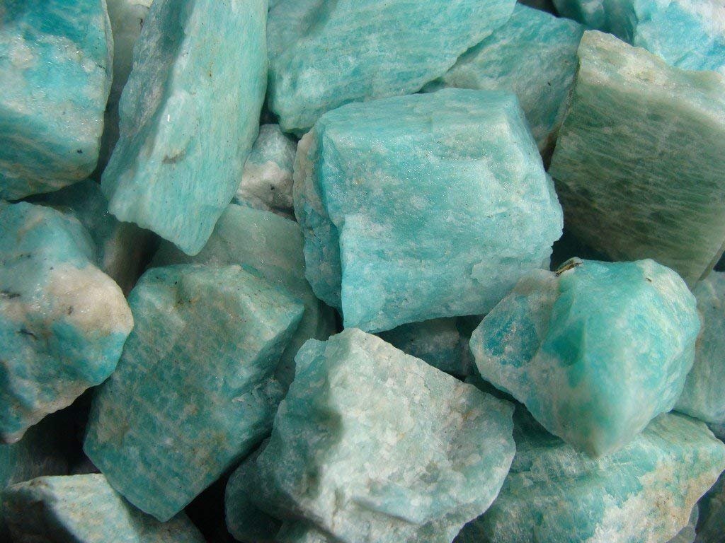 Zenkeeper 1Lb Amazonite Crystal Stone Natural Raw Stones & Fountain Rocks for Tumbling, Cabbing, Polishing, Wire Wrapping, Wicca & Reiki Crystal Healing